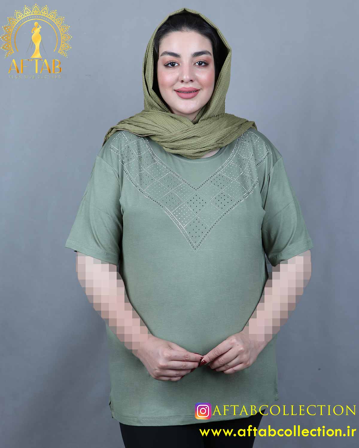 تیشرت نگین لوزی سایزبزرگ مناسب برای استفاده خانگی با جنس ویسکوز نخ پنبه ضد حساسیت در رنگبندی متنوع