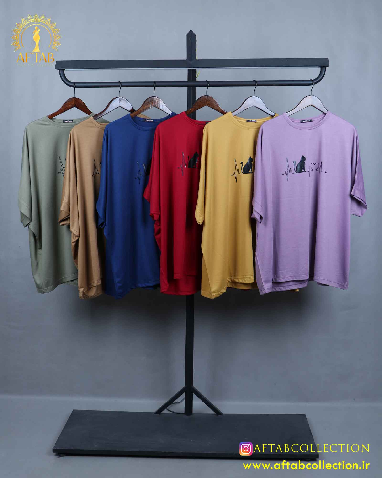 تیشرت کیمونو چاپی سایزبزرگ تنخور آزاد راحت و سبک،ضد حساسیت پوستی در رنگبندی متنوع ريال کشسانی بالا