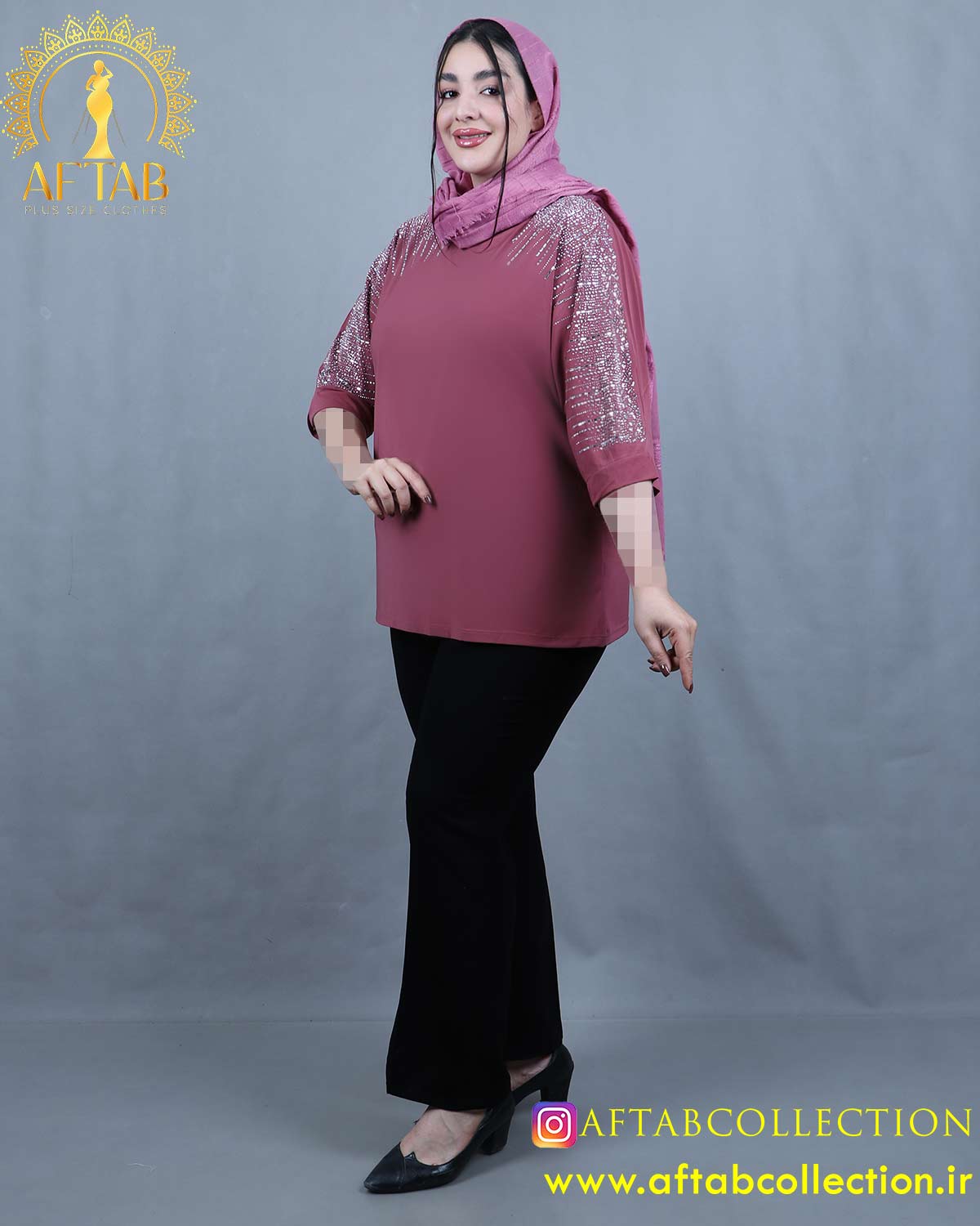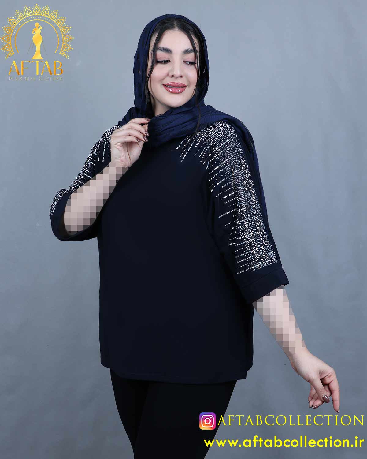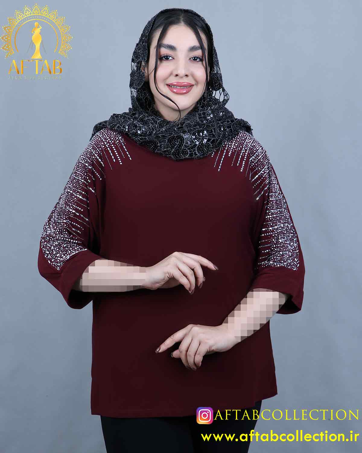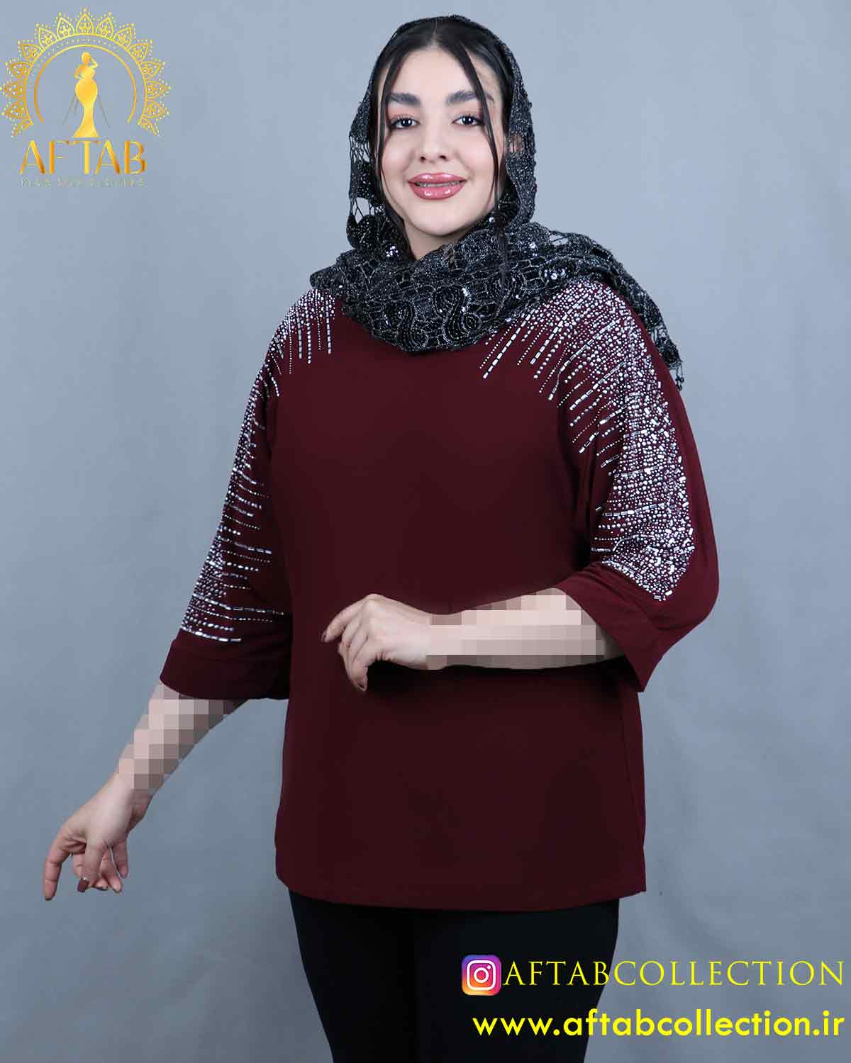 شومیز جودون سر شانه نگین سایزبزرگ بسیار شیک و لوکس مناسب برای بانوانی که میخواهند در مجالس بدخشند