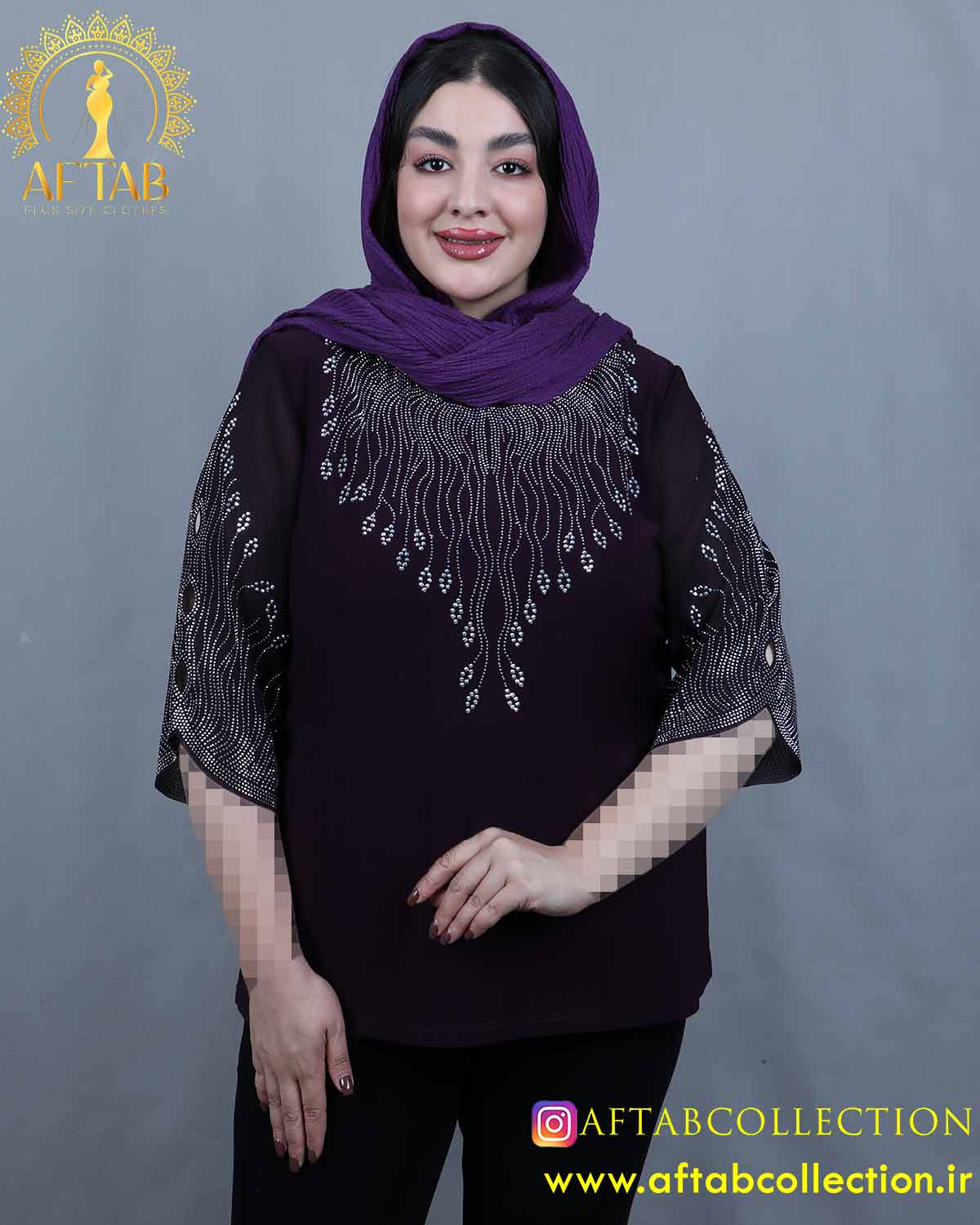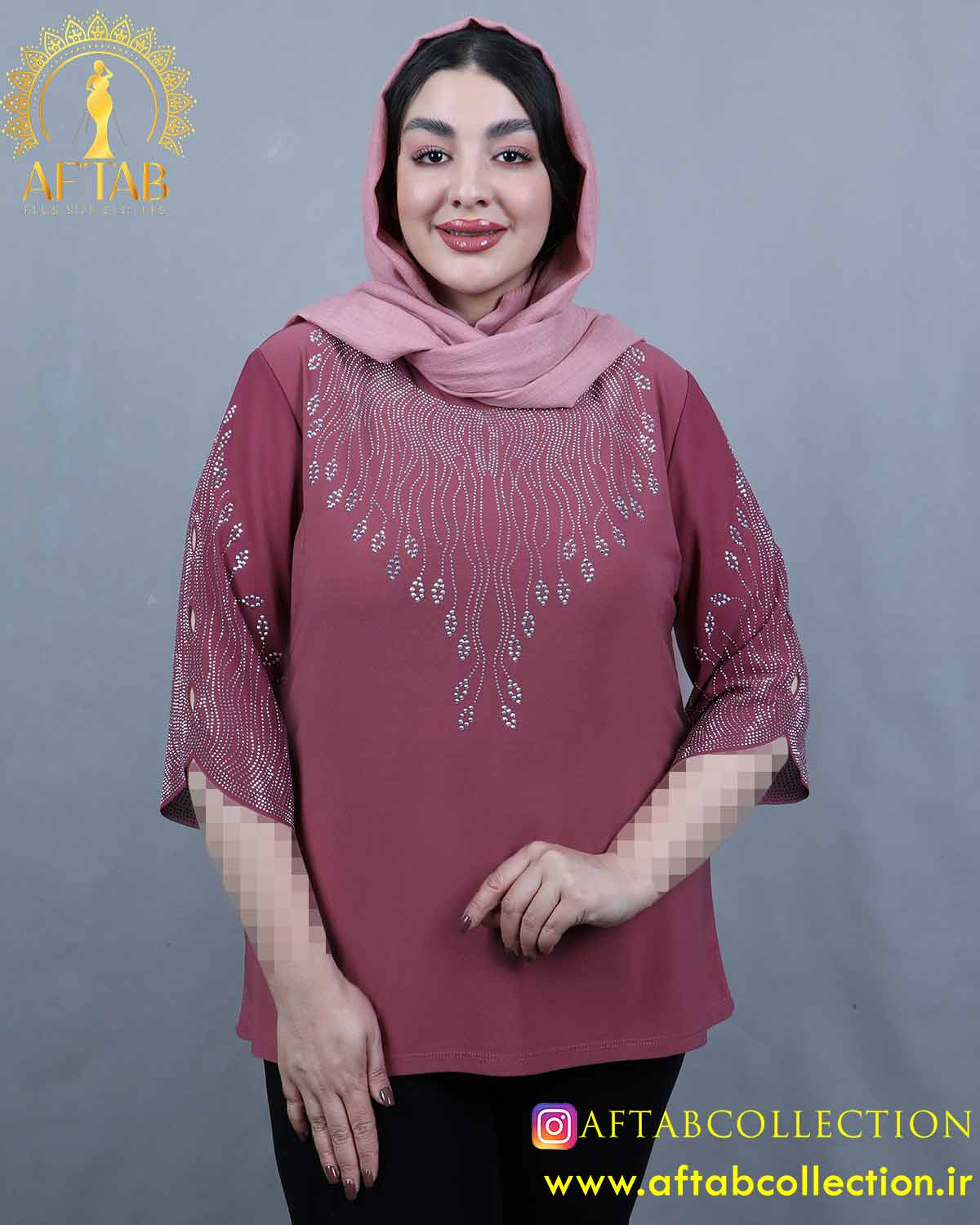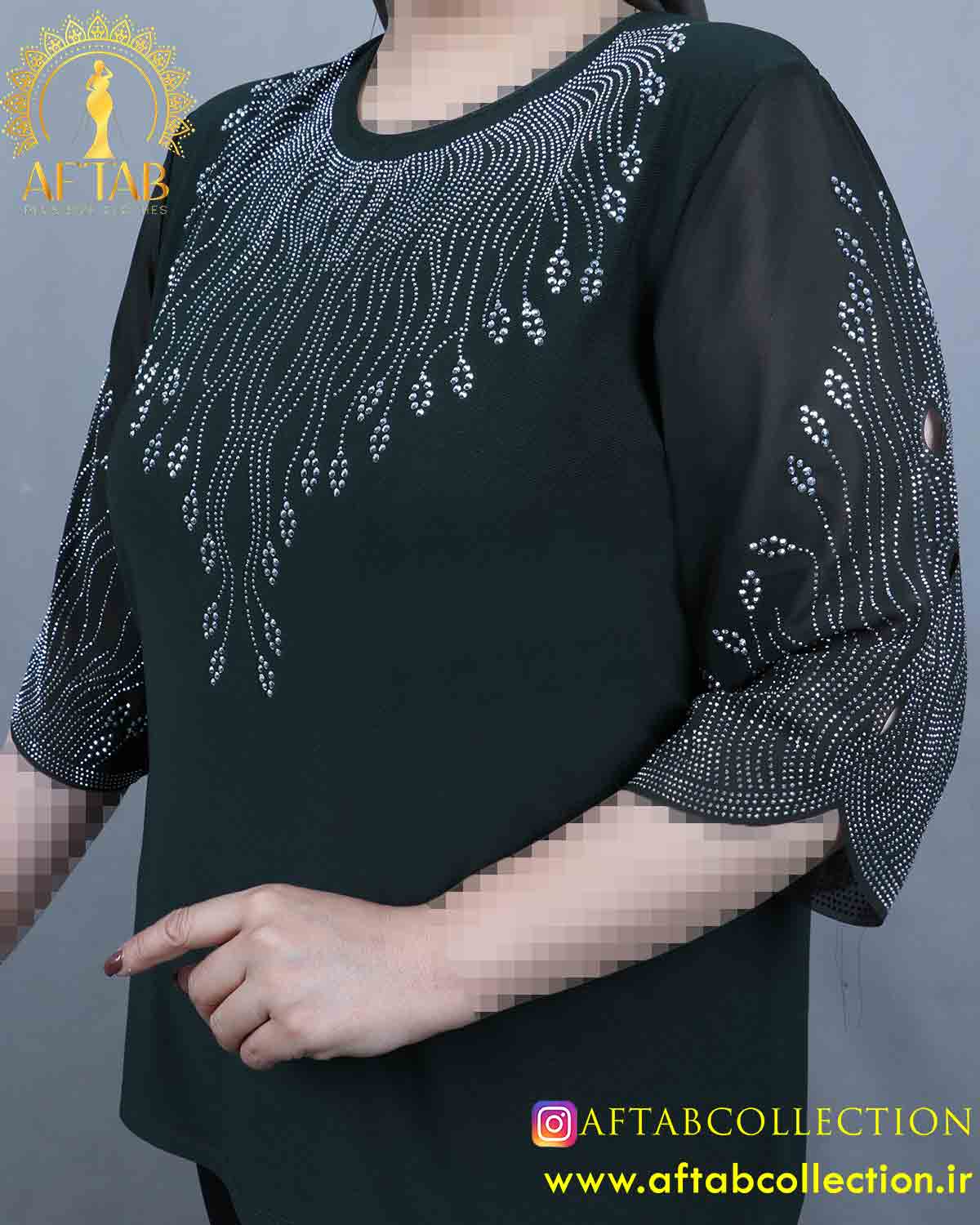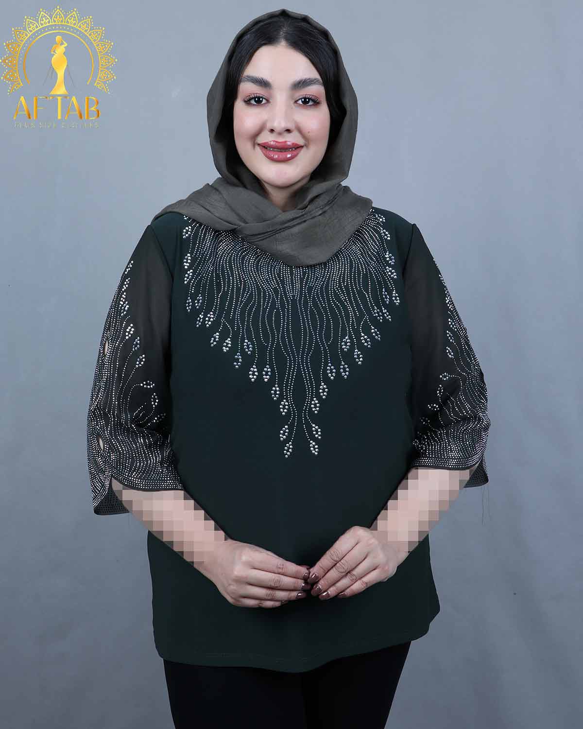 جلو شومیز و آستین تزئین شده با نگین(بدون ریزش و رنگ ثابت)