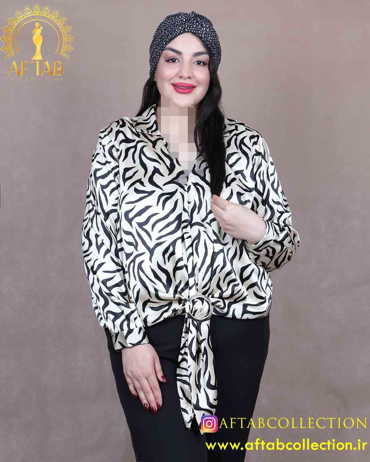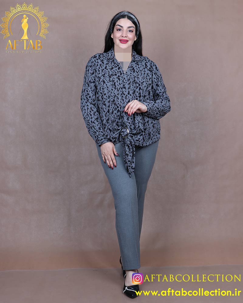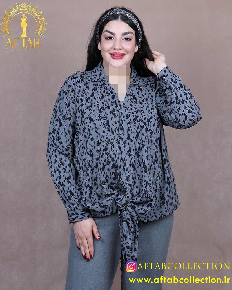 شومیز ساتن طرحدار گره حلقه سایزبزرگ 6461