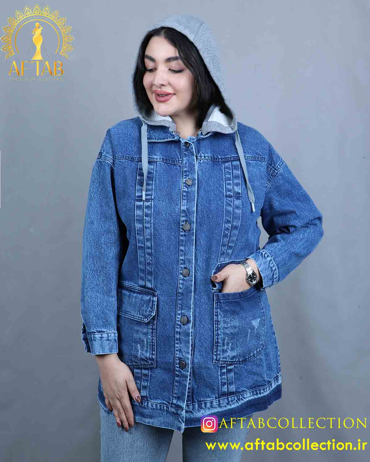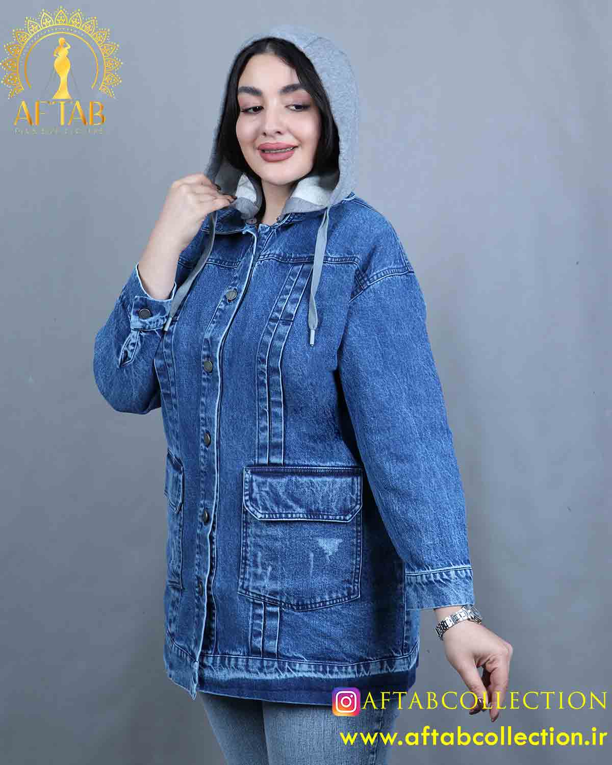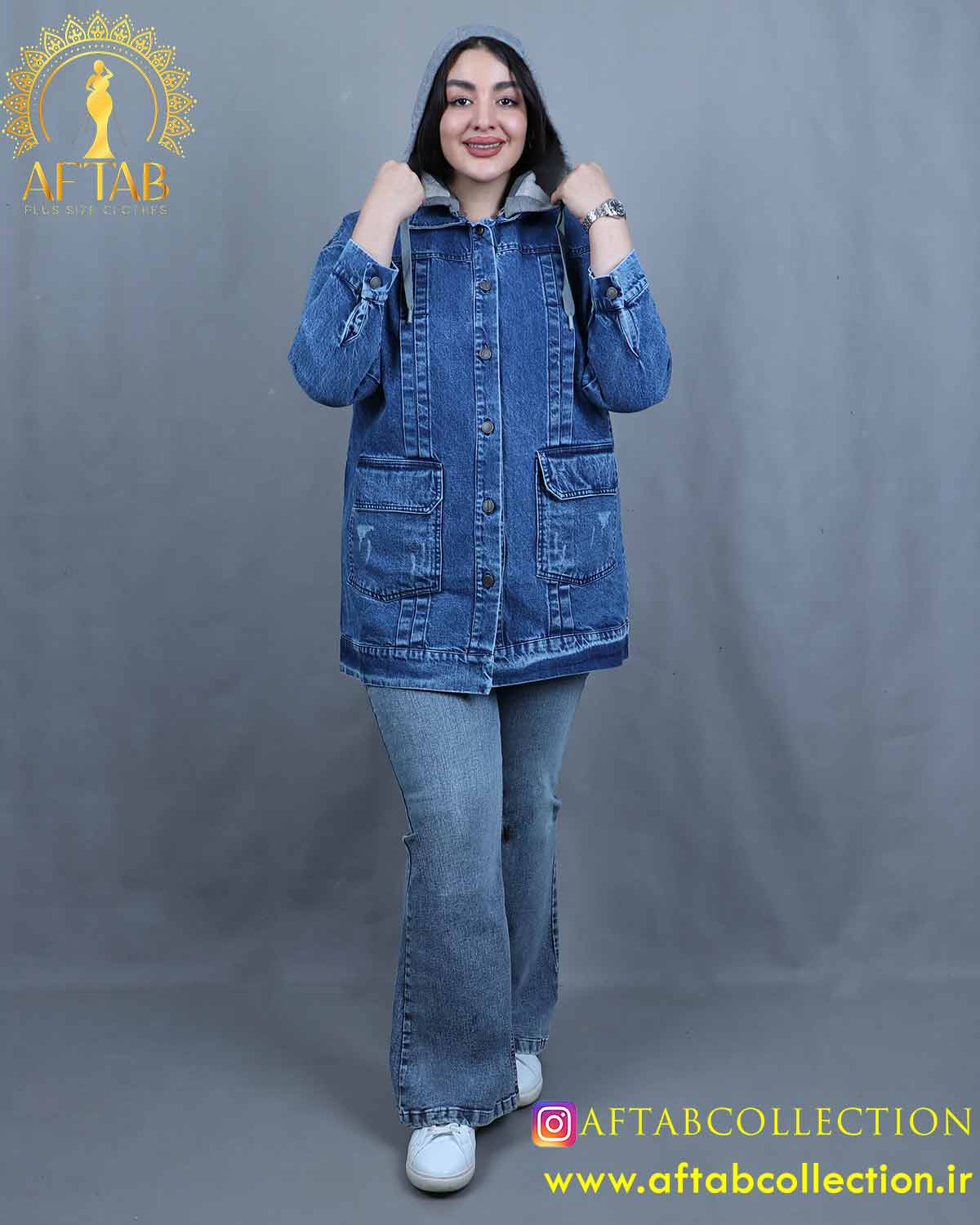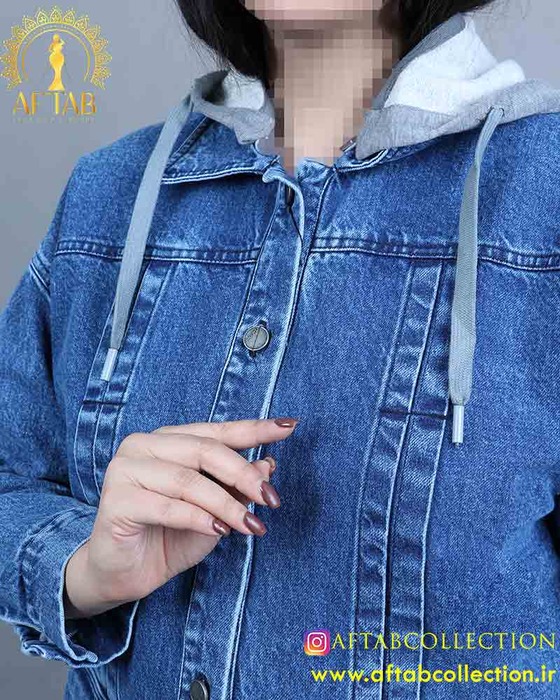 مانتو جین کلاه دار سایزبزرگ برای استایل های اسپرت و وروزمره قابل سفارش در دو رنگبندی آبی و زغالی