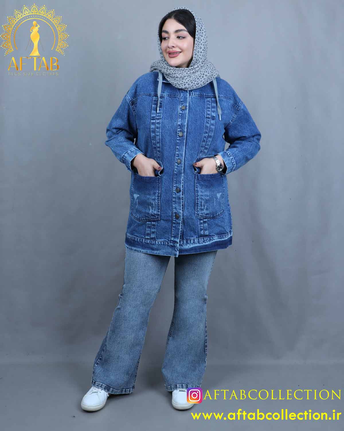 مانتو جین کلاه دار سایزبزرگ