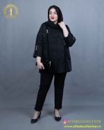 مانتو ژاکارد کارتیه سایزبزرگ کاری بسیار شیک مناسب برای استایل های مجلسی و مهمانی