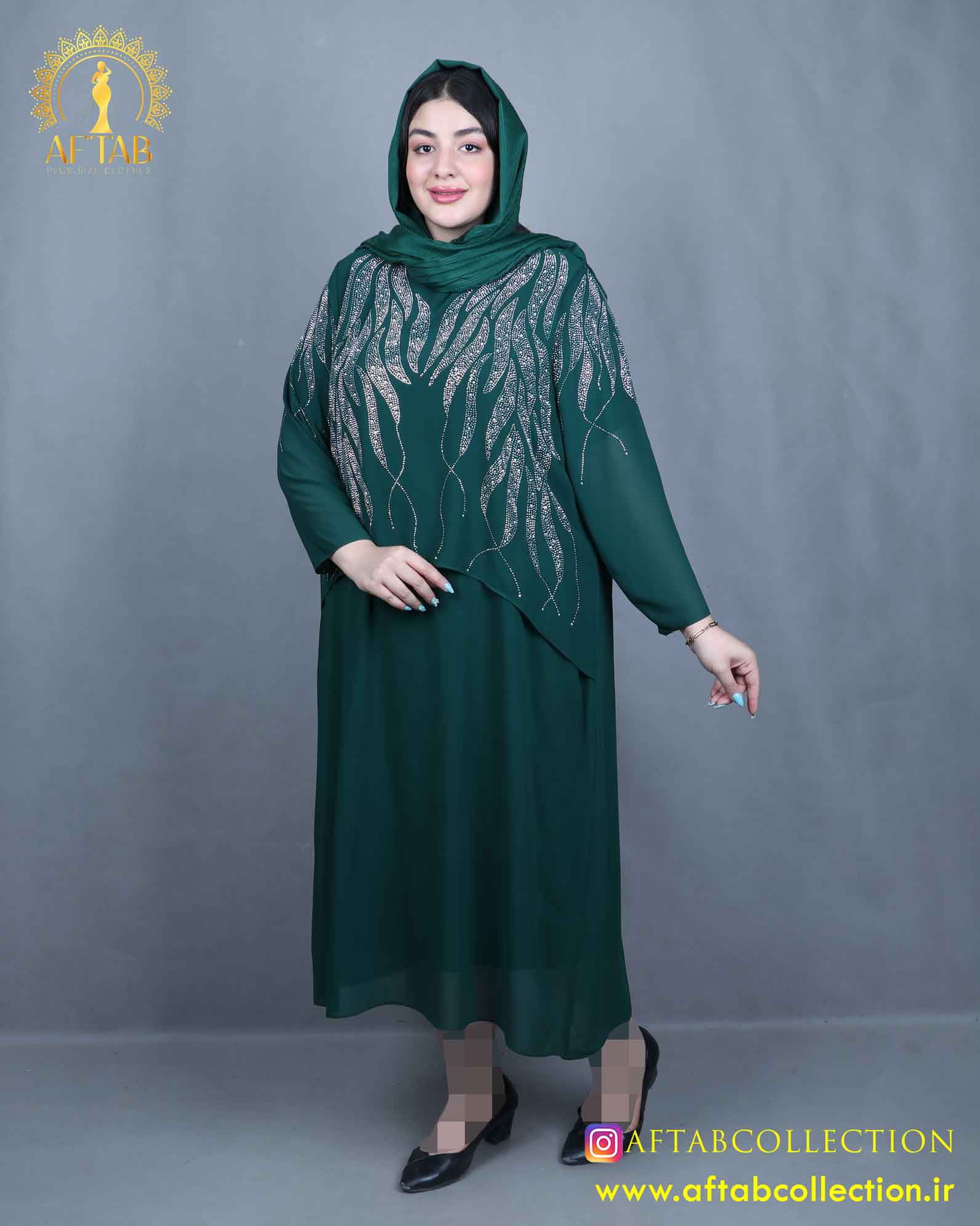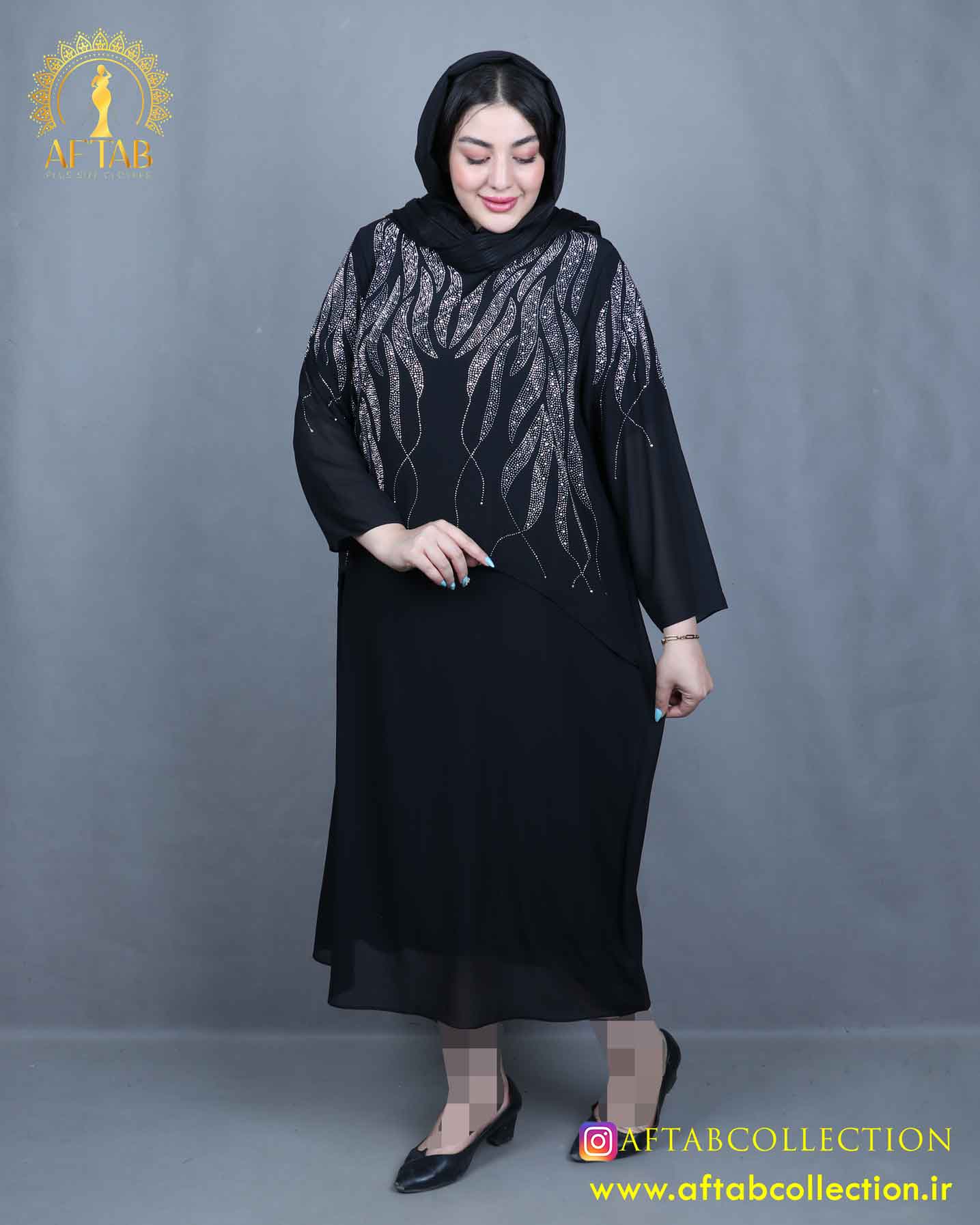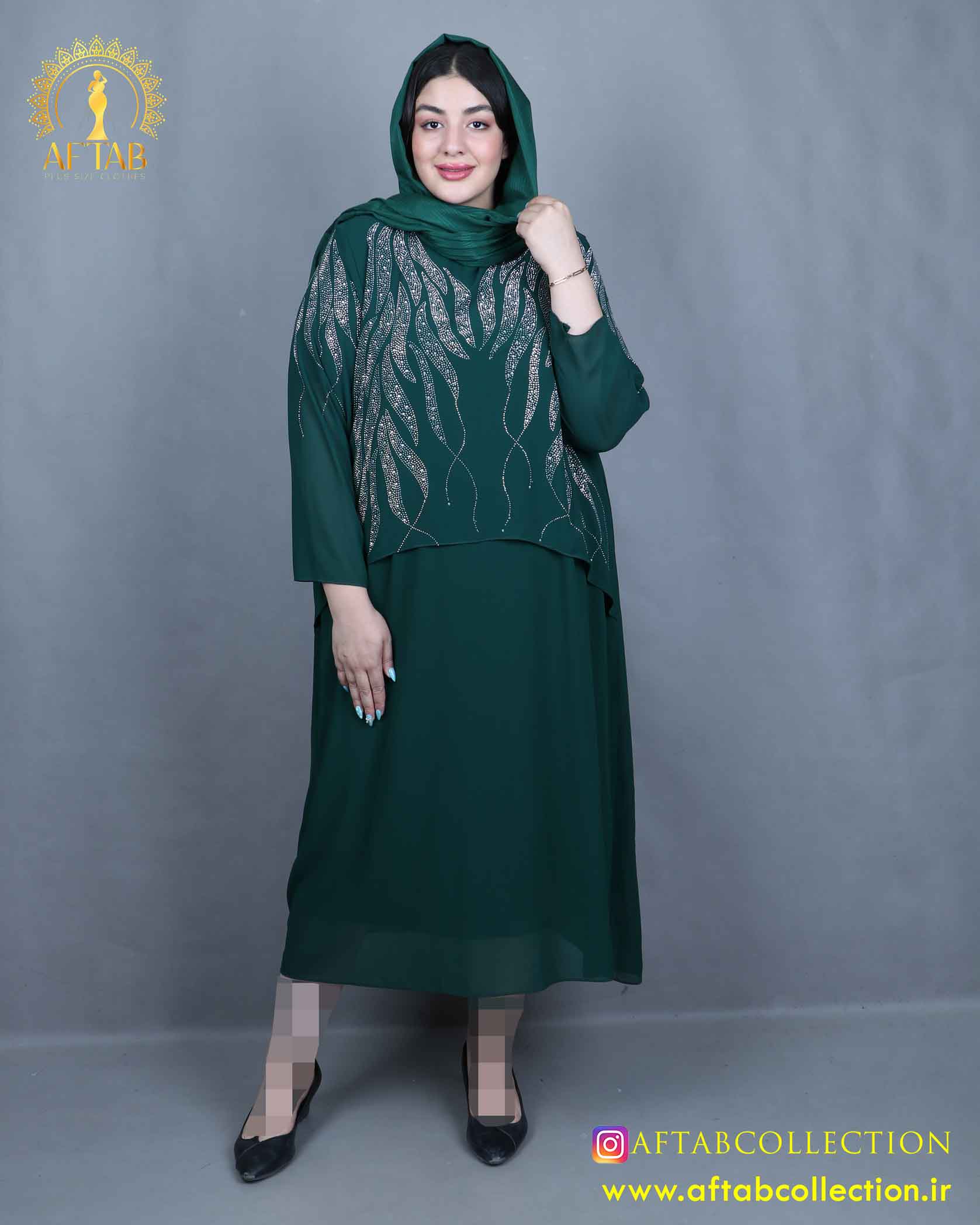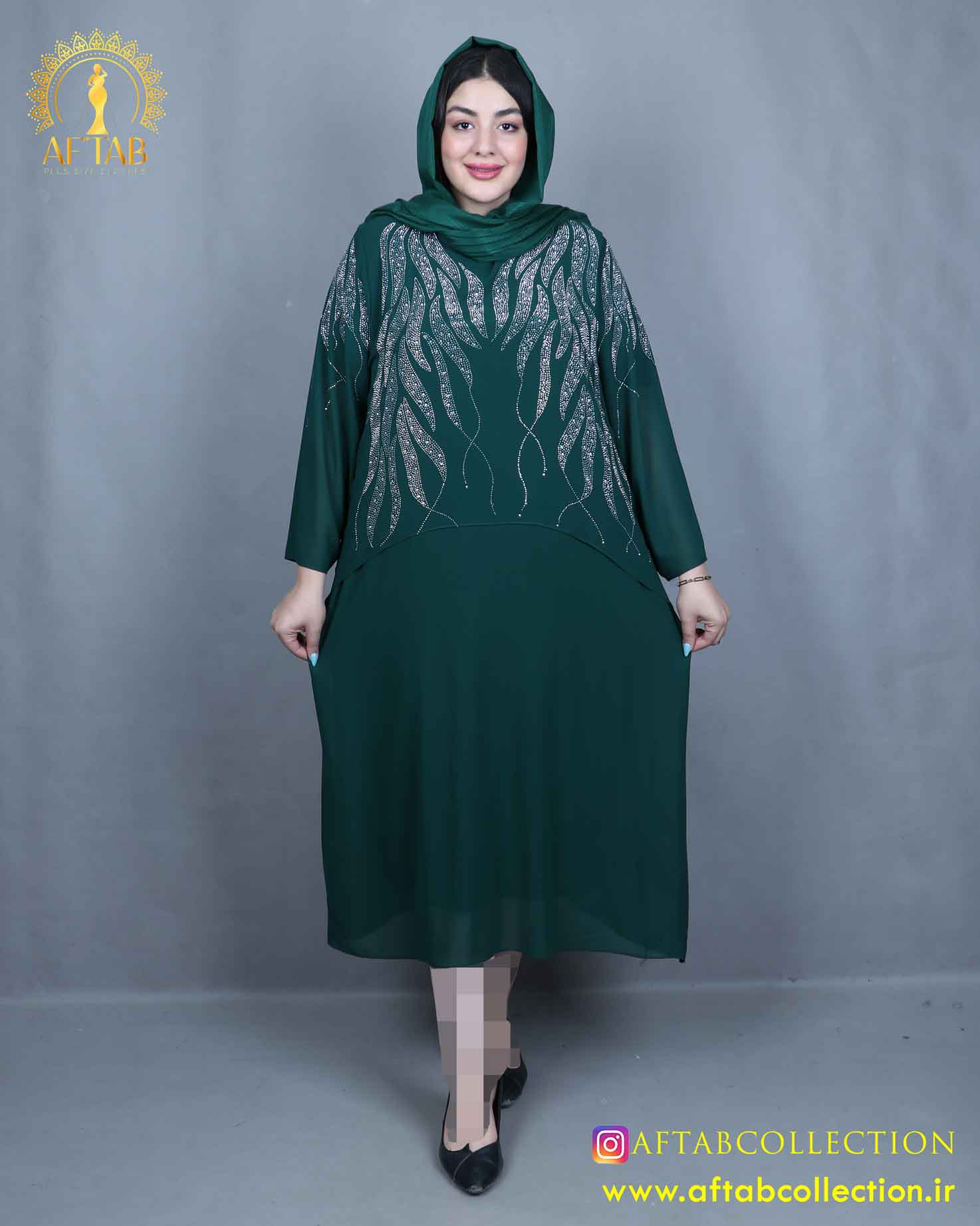 پیراهن نگین برگی سایزبزرگ با جنس حریر ناز کاملا لخت و ریزش دار مناسب برای استفاده در مجالس و دورهمی ه