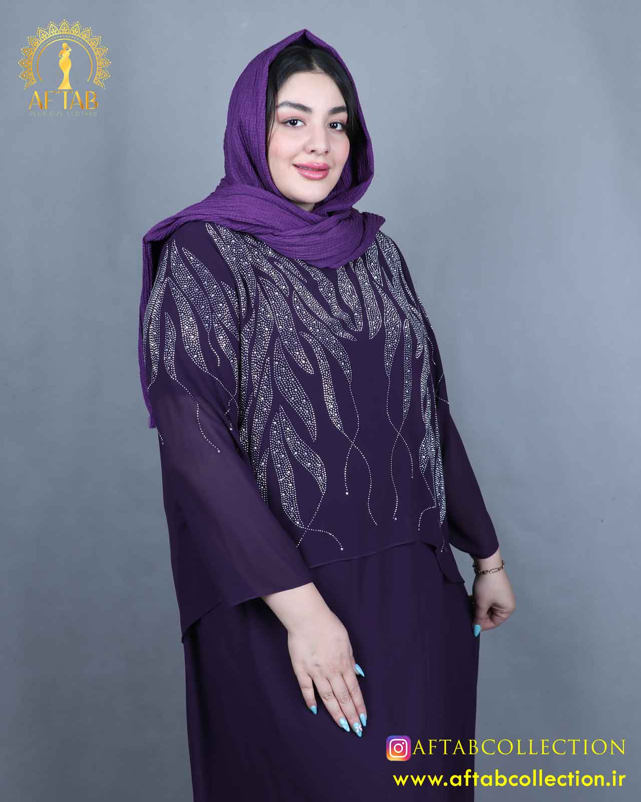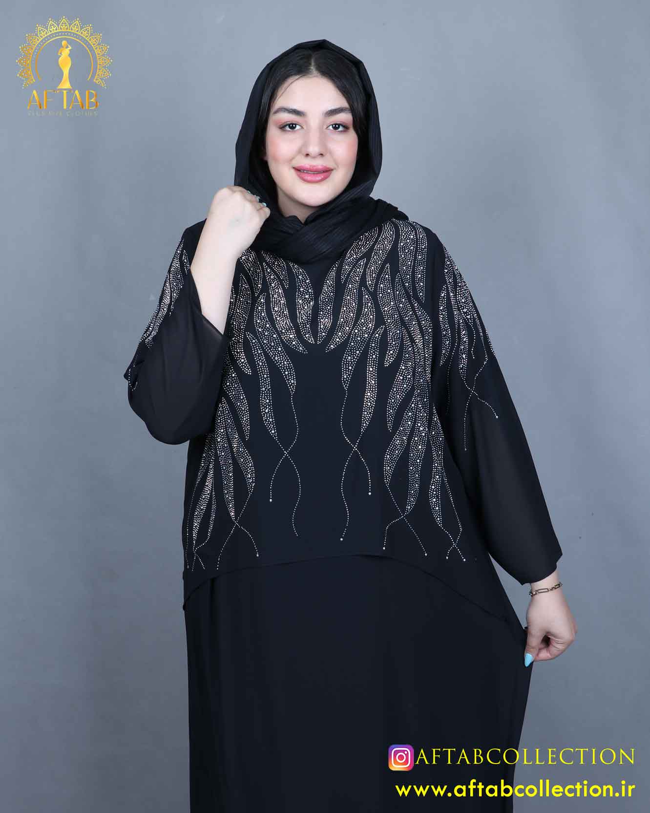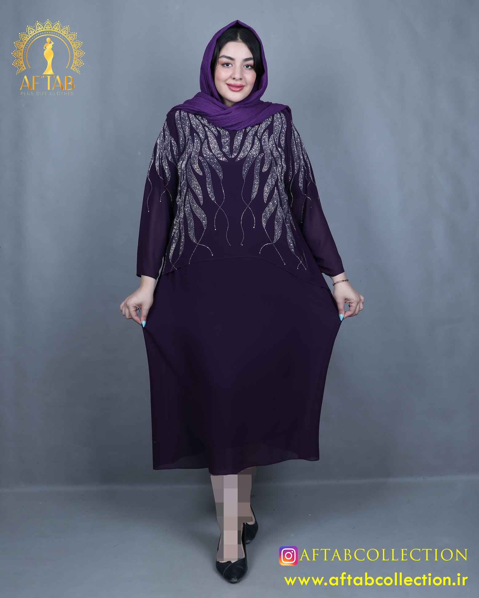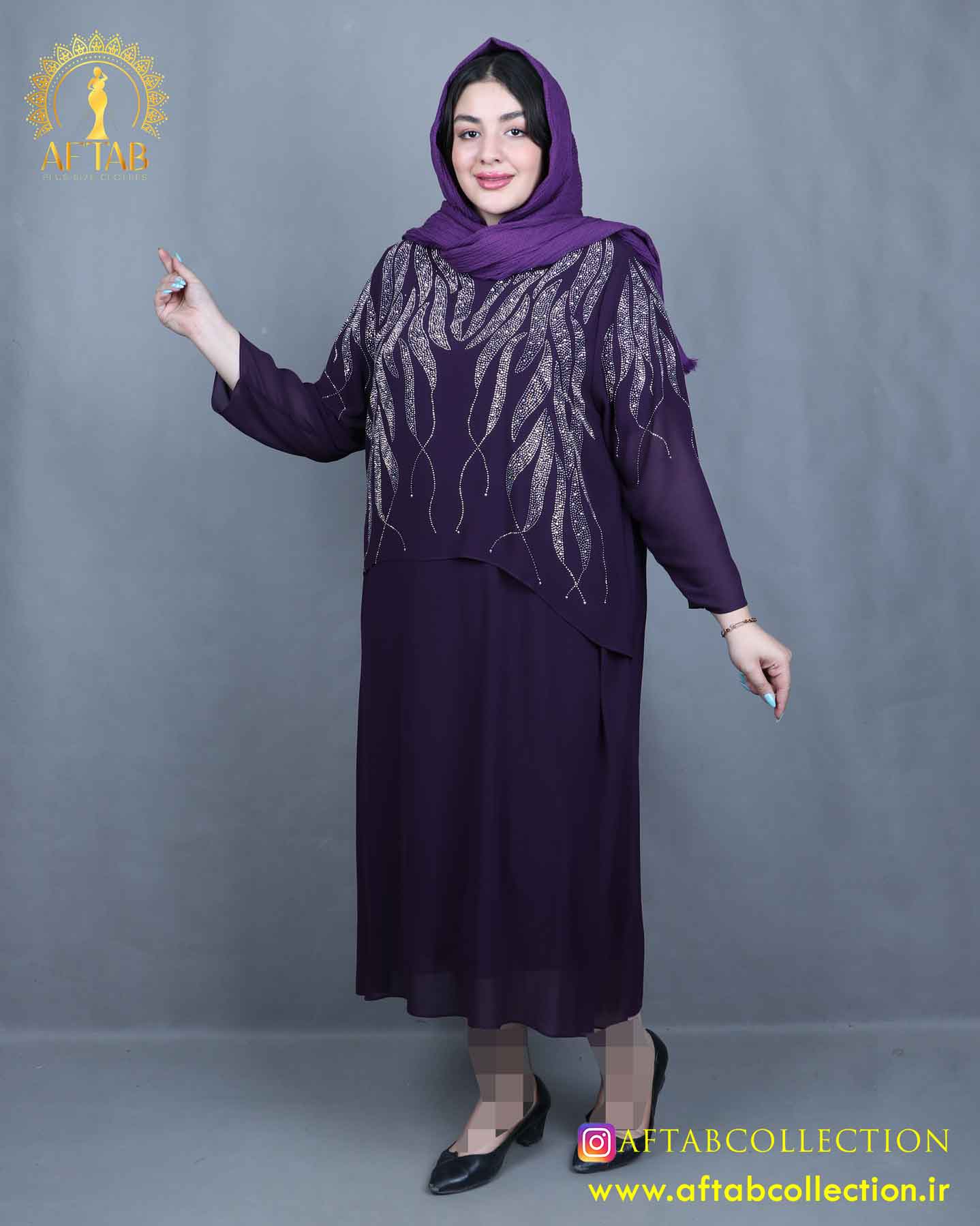 پیراهن نگین برگی سایزبزرگ با جنس حریر ناز کاملا لخت و ریزش دار مناسب برای استفاده در مجالس و دورهمی ه